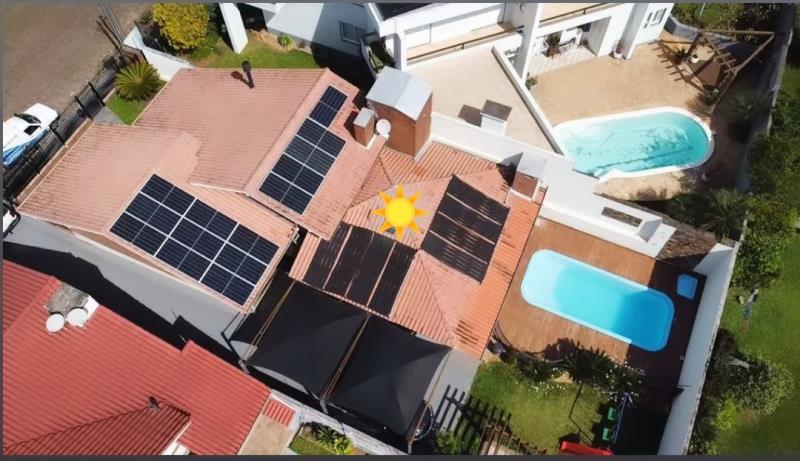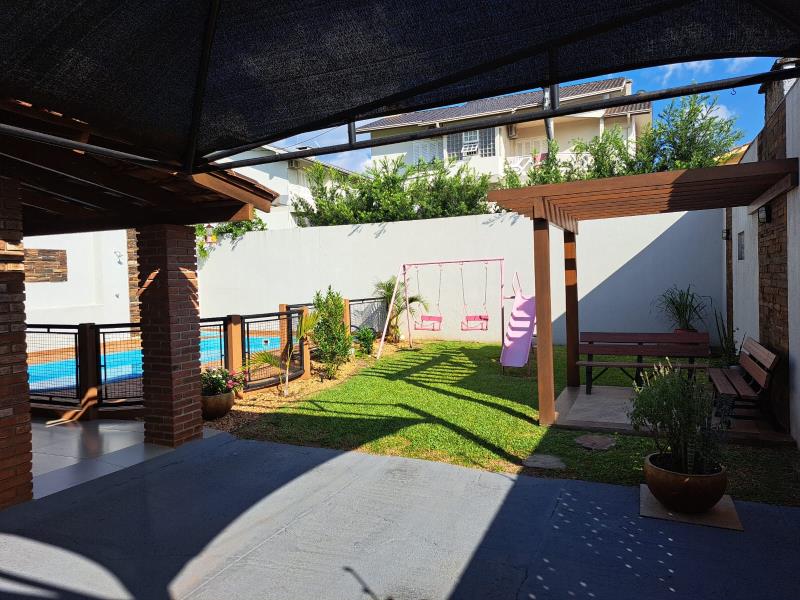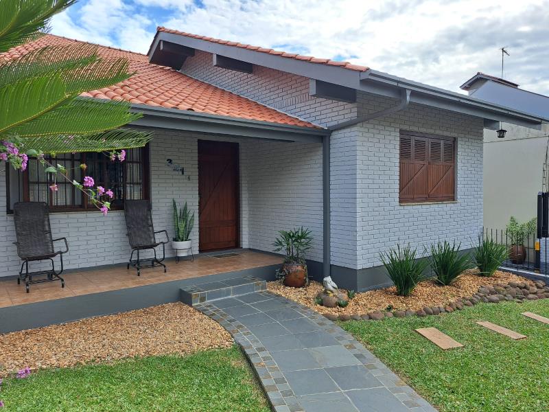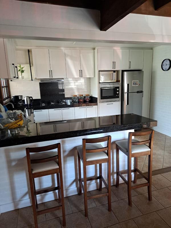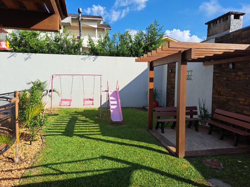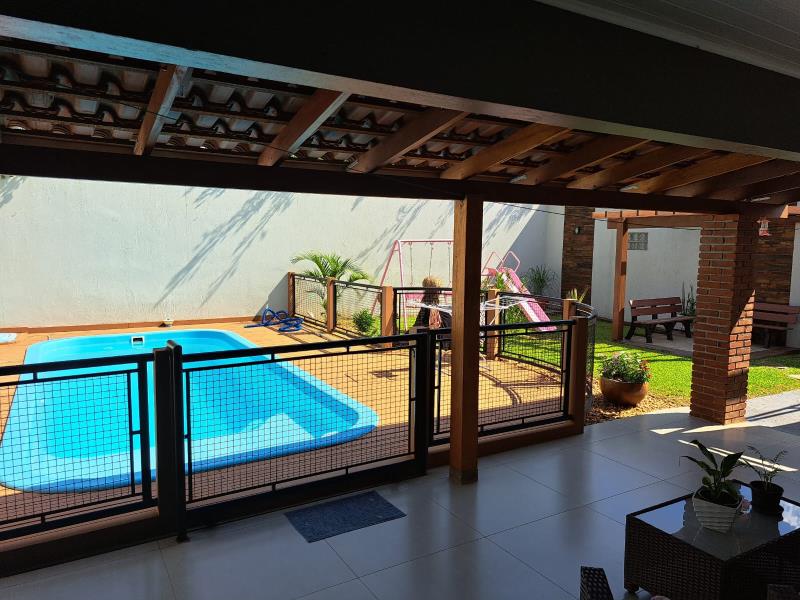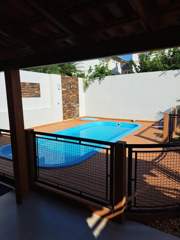 - Casa com 3 dormitórios sendo 1 suite, sala de estar, sala de jantar, 2 banheiros sociais, lavabo, área de serviço, churrasqueira, cozinha, forro de madeira, forro de prontelaje, garagem coberta, lareira, pátio cercado, pátio murado, pergolado, piscina aquecida, piso cerâmico, mezanino que possibilita um 4º dormitório ou um escritório, ficam móveis sob medida, 5 ares condicionados, energia solar.