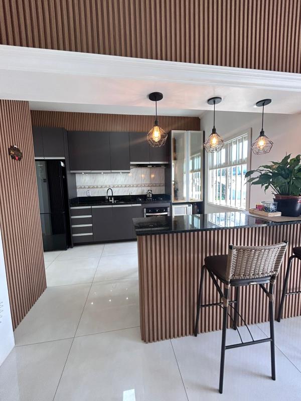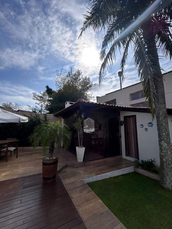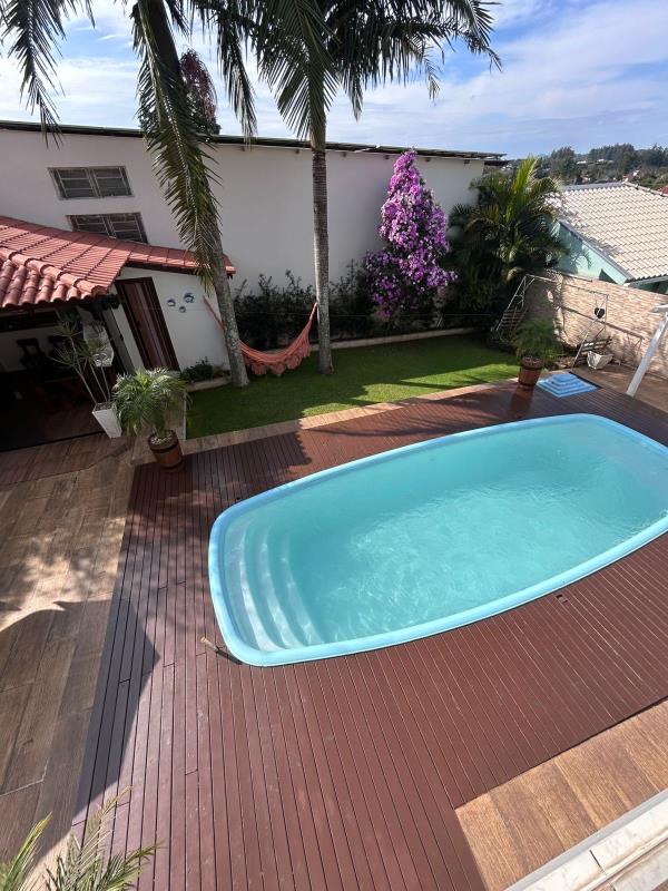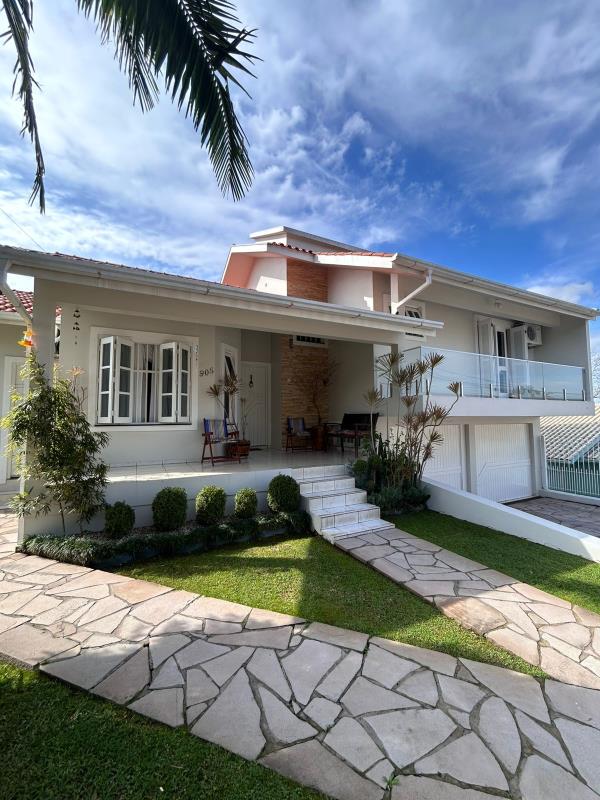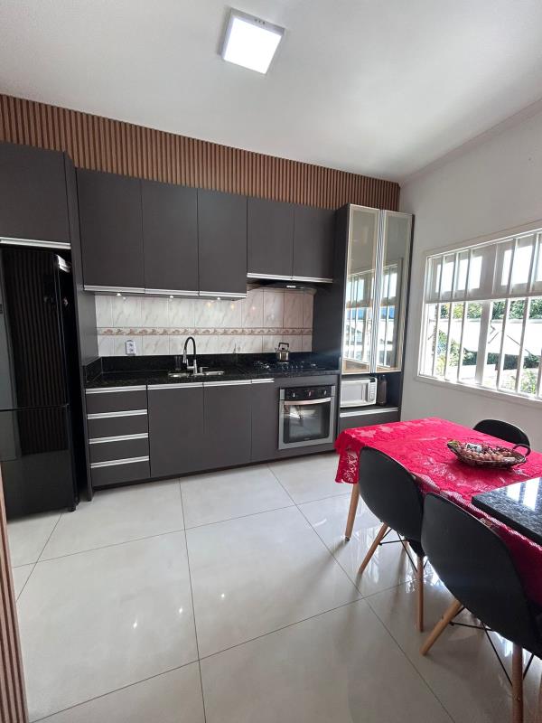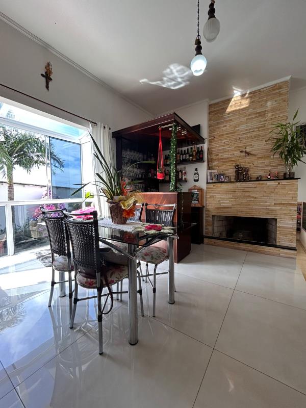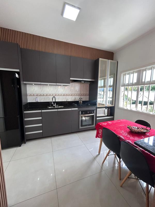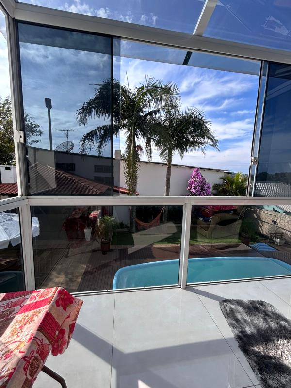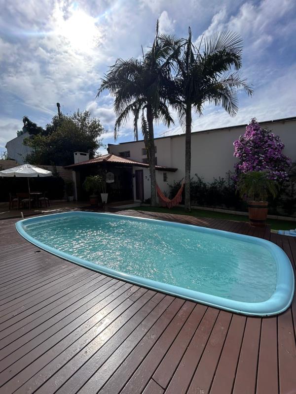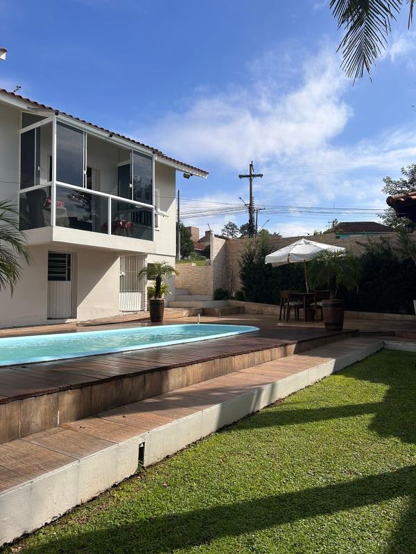 Casa com 3 dormitórios sendo 1 suíte, sala de estar, cozinha e sala de jantar integradas, lareira, sacada fechada, área de serviço, despensa, 3 banheiros sociais, 2 churrasqueiras, quiosque, piscina, pátio cercado e murado, portão eletrônico, porão, sacada aberta em todos dormitórios e garagem para dois veículos. Ficam móveis sob medida.