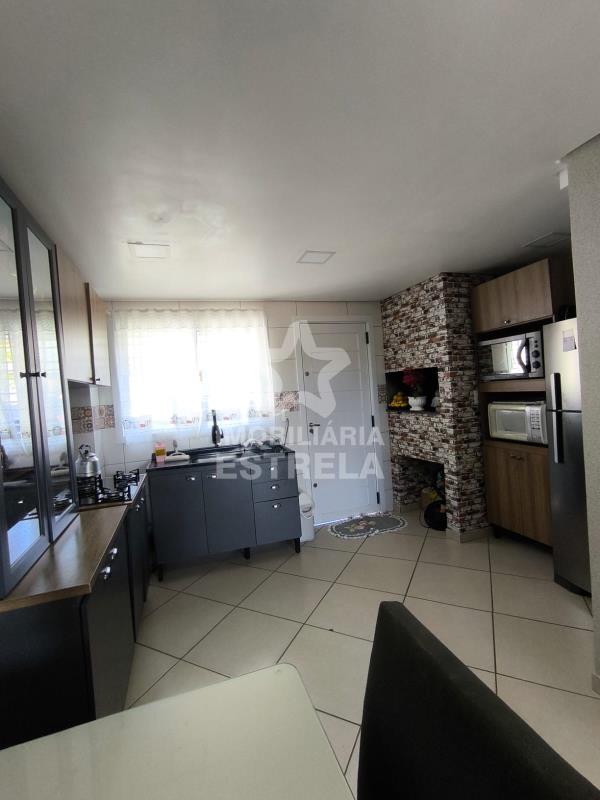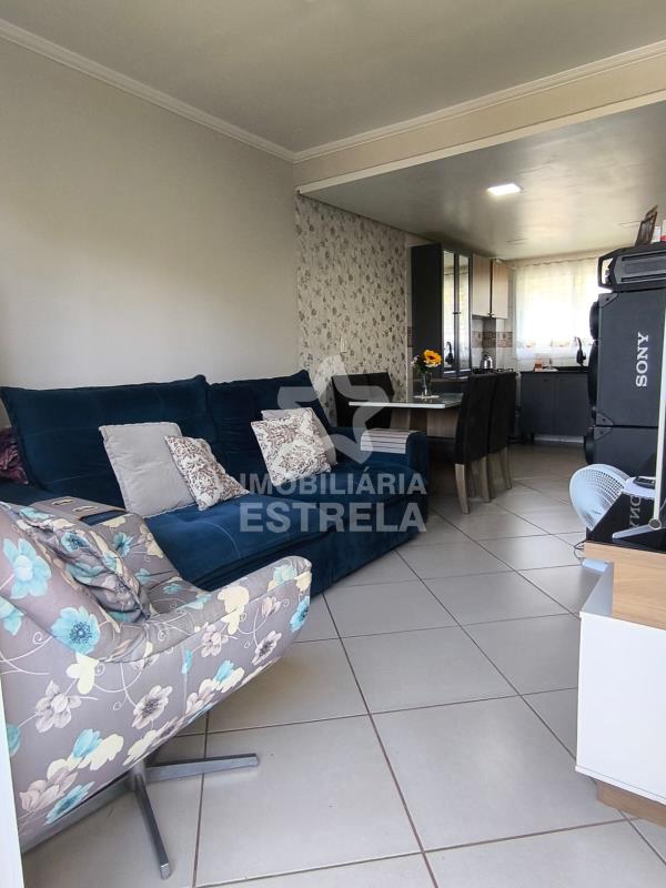 O imóvel conta com 2 dormitórios, sala e cozinha integradas, banheiro social e lavabo. Possui área de serviço aberta, espaço cercado e com portão eletrônico, além de vaga de garagem para 1 carro.