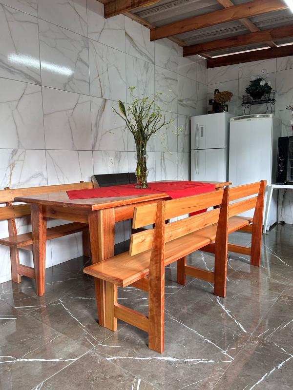 Linda casa com 2 dormitórios, sala de estar, sala de jantar, banheiro social, área de serviço, despensa, forro de prontelaje, lareira, pátio cercado, piso cerâmico, portão eletrônico, churrasqueira, vaga de estacionamento. Ficam móveis sob medida!