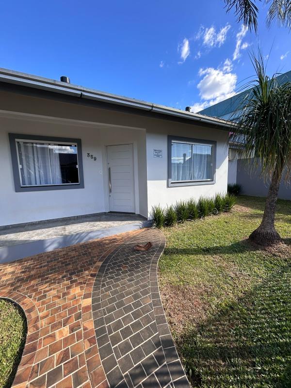 - Casa ampla de bom gosto com 3 dormitórios sendo 1 suite, 2 salas de estar, sala de jantar, banheiro social, área de serviço, churrasqueira, cozinha, forro de prontelaje, garagem fechada, pátio cercado, piso porcelanato, portão eletrônico, quiosque.