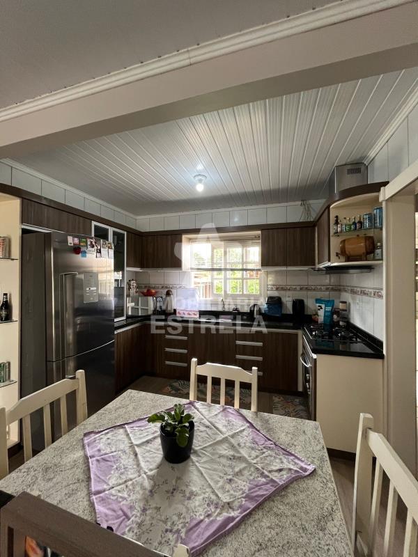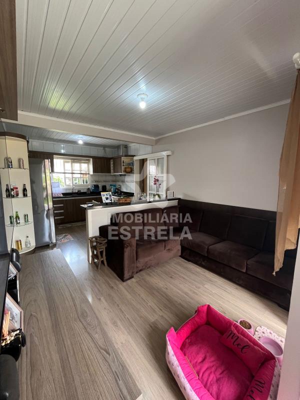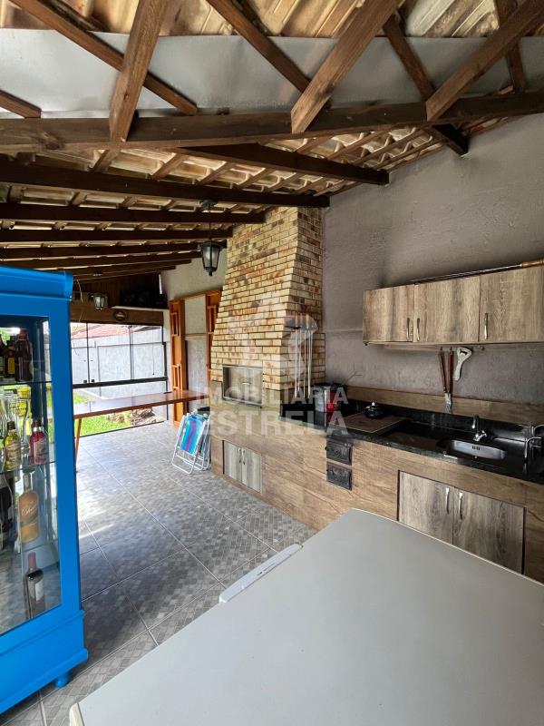 Casa com 2 dormitórios, ambiente social integrado, banheiro, área de serviço fechada, despensa e quiosque com churrasqueira, fogão campeiro. Conta ainda com garagem coberta e garagem fechada, câmeras de monitoriamento, portão eletrônico e movéis sob medida que permanecem no local.