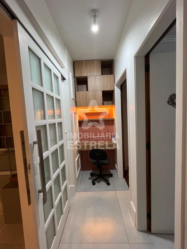 Apartamento lindo com 3 dormitórios sendo 2 suítes, ambiente social integrado, cozinha, banheiro social, lavabo, espaço gourmet com churrasqueira, área de serviço, água quente, edifício com elevador, sacada aberta e fechada, espaço home office, vaga de garagem. Ficam os móveis projetados.