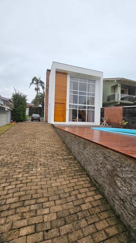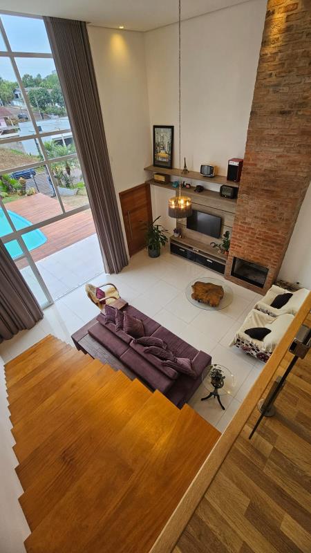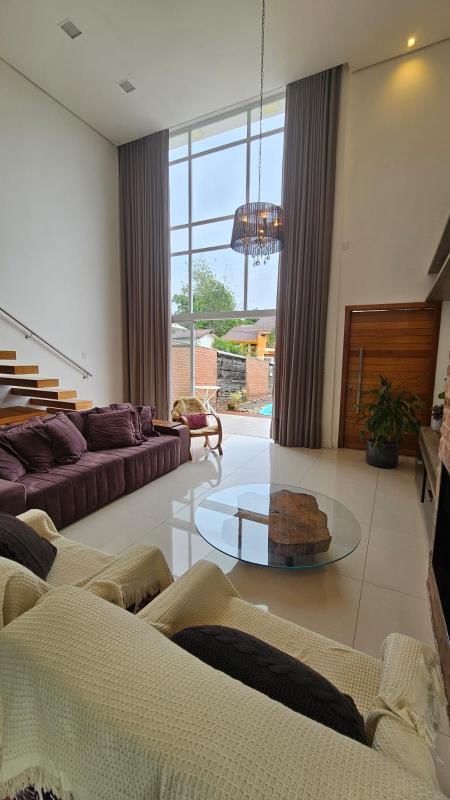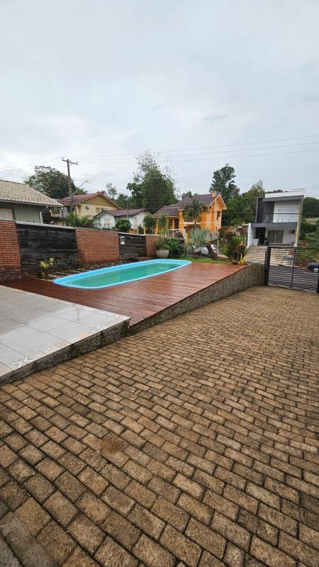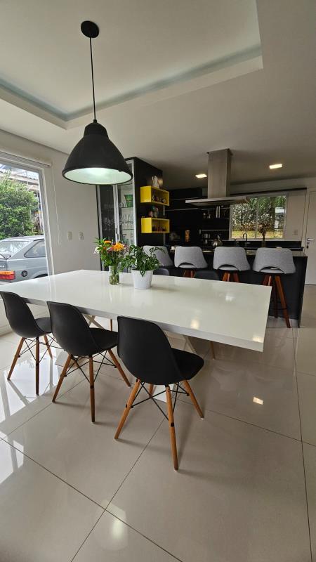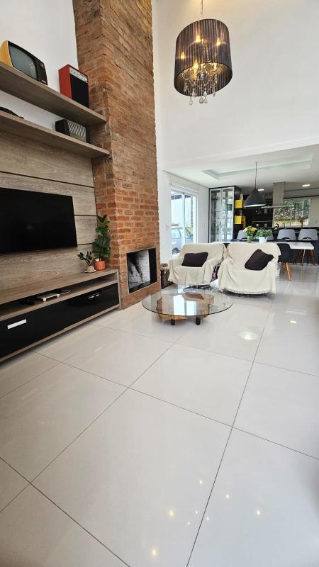 - Linda casa com 2 dormitórios, sala de estar e sala de jantar integradas com pé direito alto, banheiro social, lavabo, área de serviço, churrasqueira, cozinha, forro de prontelaje com rebaixo em gesso, lareira, pátio cercado, pátio murado, piscina, piso porcelanato, portão eletrônico.