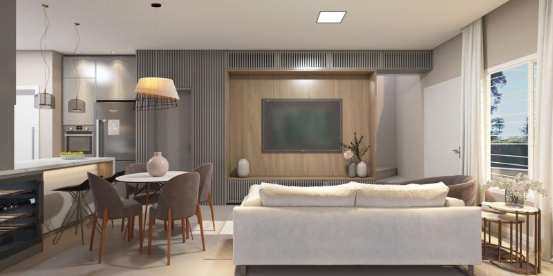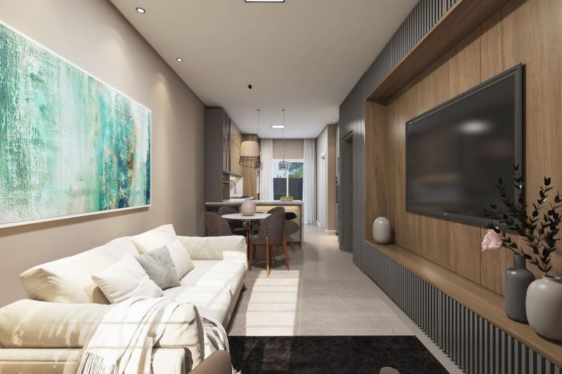 Banheiro social + lavabo; Cozinha, sala de estar e jantar integradas; Área de serviços separada; Forro rebaixado em gesso no térreo; Piso porcelanato na área social; Piso laminado nos dormitórios; Esquadrias externas em alumínio; Portas internas em madeira com pintura em laca; Esperas para água quente (opcional); Esperas para splits; Espera para energia solar; Pátio cercado com muro nos fundos. e garagem para 2 carros!!! Área privativa: 88 m²