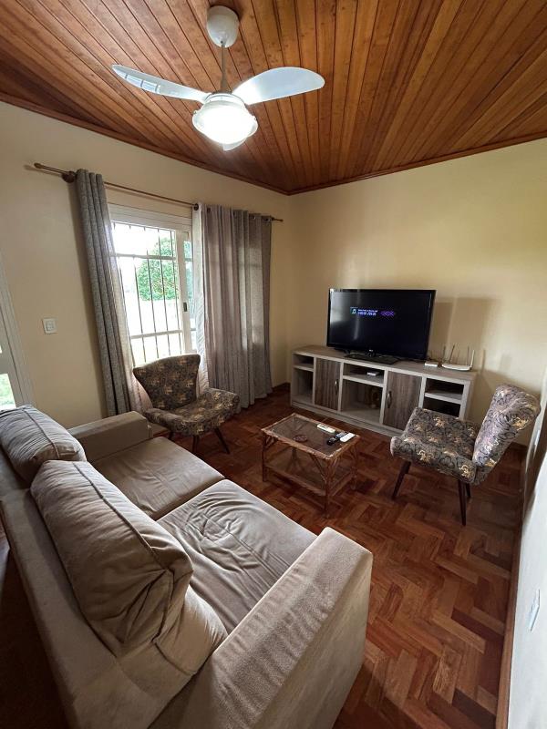- Casa com 2 dormitórios e possibilidade de mais 1, sala de estar, sala de jantar, 2 banheiros sociais, área de serviço, churrasqueira, cozinha, despensa, forro de madeira, garagem fechada para 2 carros, amplo pátio cercado e murado, piso cerâmico e parque, portão eletrônico, varanda fechada, árvores frutíferas.