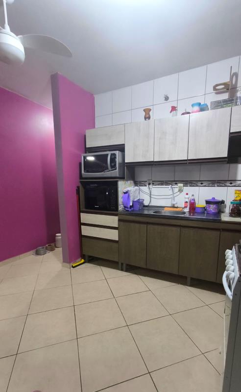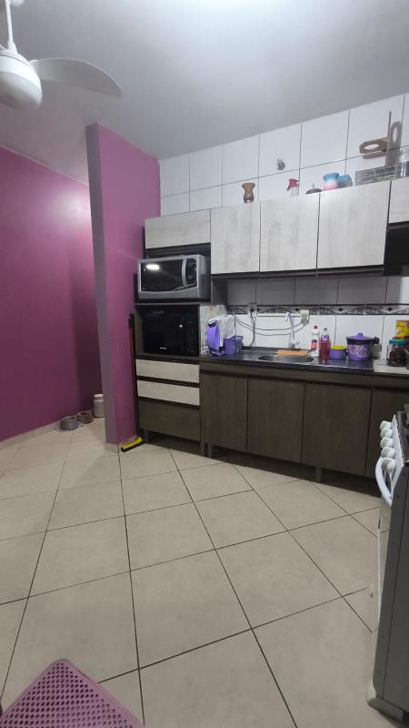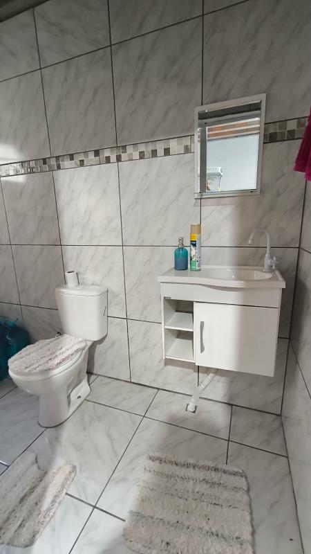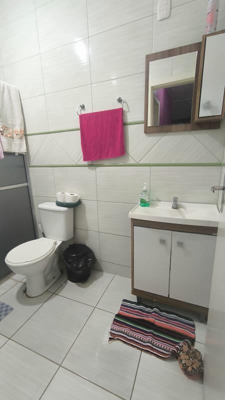- Casa com 2 dormitórios, sala de estar, banheiro social, lavabo, área de serviço, cozinha, forro de prontelaje, 1 vaga de garagem coberta, 1 garagem fechada, pátio cercado na frente, piso cerâmico.