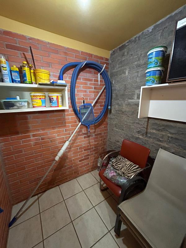 - Casa com 4 dormitórios sendo1 suite, sala de estar, sala de jantar, 2 banheiros sociais, lavabo, área de serviço, churrasqueira, cozinha, despensa, escada, forro de prontelaje, garagem fechada, pátio cercado, piscina, piso cerâmico, piso de madeira, portão eletrônico, quiosque, Salão de festas, varanda, piscina.