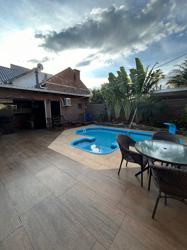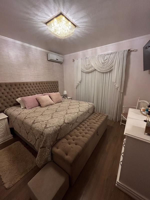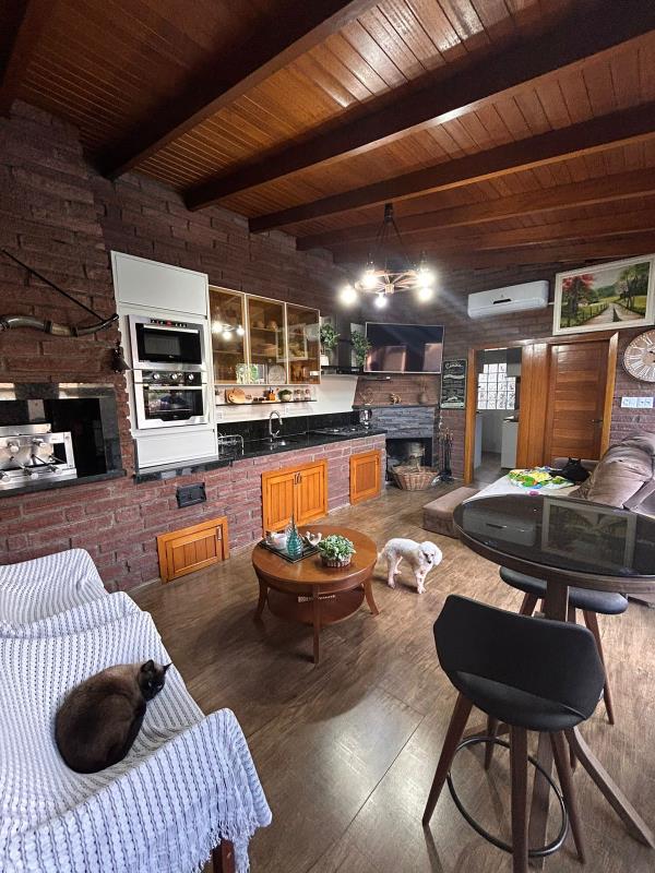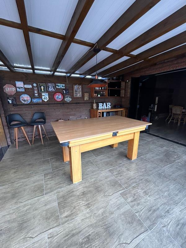- Casa de esquina com 4 dormitórios, sala de estar, sala de jantar, 2 banheiros sociais, área gourmet, área serviço fechada, 2 churrasqueiras, cozinha planejada, forro de madeira, forro de prontelaje, pátio cercado e murado, piso laminado, piso porcelanato, portão eletrônico, quiosque, piscina aquecida. Ficamo móveis sob medida, lustres, espera para água quente.