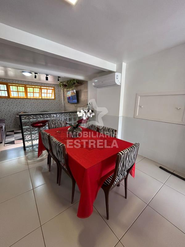 Imóvel todo mobiliado com 3 dormitórios (1 suíte), banheiro social, lavabo, salas de estar e jantar, cozinha, dispensa, área de serviço, escritório e garagem para 2 carros com portão eletrônico. Conta ainda com churrasqueira para lazer.