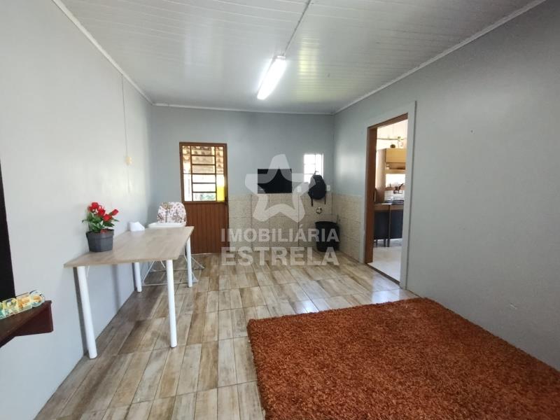Casa á venda com 2 dormitórios, banheiro, sala de estar, cozinha, área de serviço, garagem coberta para 1 carro, churrasqueira. O espaço externo proporciona um agradável pátio, ideal para momentos de lazer.
