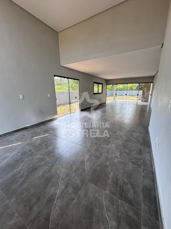Casa nova esperando por você! - Possui 3 dormitórios sendo 1 suíte e closet; - Lareira; - Cozinha ampla integrada; - Sala de estar; - Àrea gourmet com churrasqueira: - Área de serviço; - Garagem com vaga para dois carros; - Pátio espaçoso. Conta com espera para automoção.